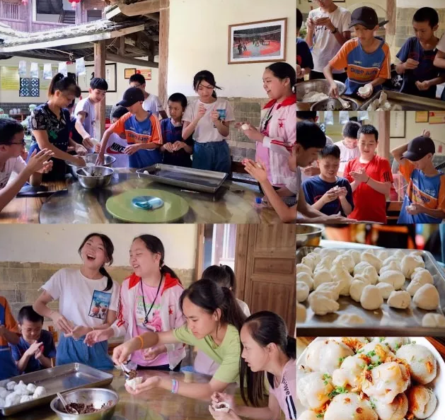 在此,我們組織孩子們進(jìn)行豐富的動(dòng)手體驗(yàn)活動(dòng),在當(dāng)?shù)厝说慕虒W(xué)下,學(xué)習(xí)打糍粑和做芋子包,切身感受當(dāng)?shù)貍鹘y(tǒng)習(xí)俗,同時(shí)品嘗福建客家特色小吃。